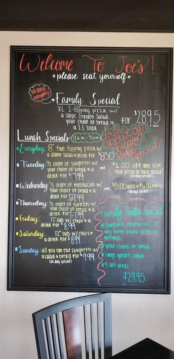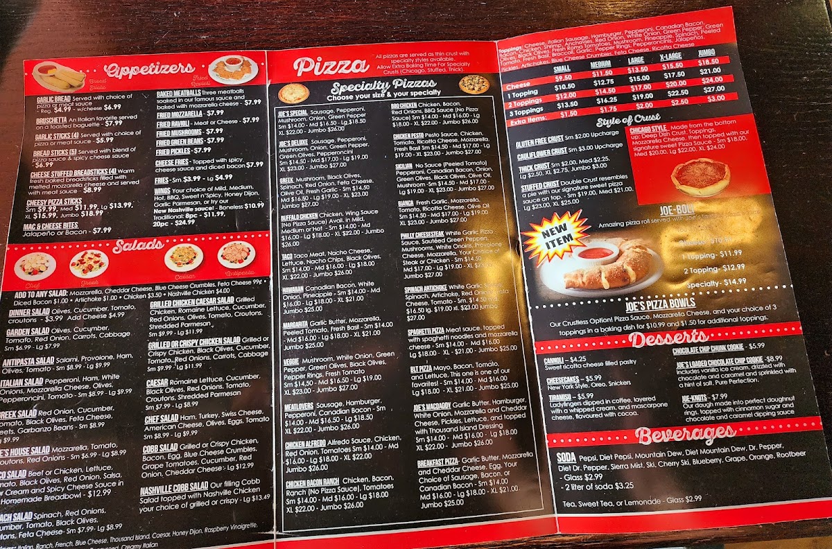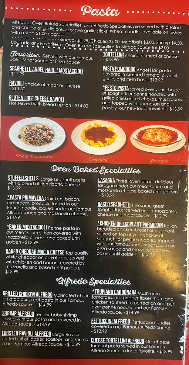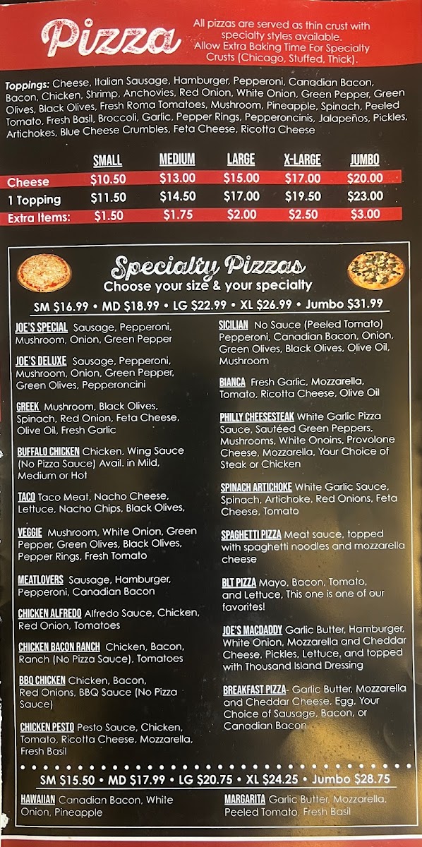 Joe's Pizza & Pasta Menu
