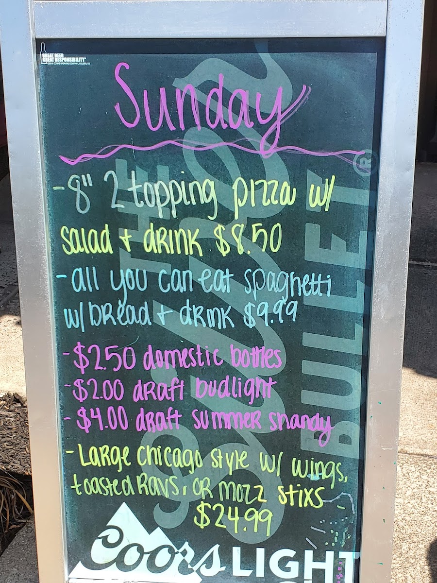 Favorites like spaghetti and ravioli bring comforting flavors that work well any day of the week, especially when accompanied by a choice of garlic bread or a crisp dinner salad. The pizza options range from classic pepperoni to unique selections like Taco Pizza or Joe’s Deluxe, complementing the laid-back vibe where you can relax and enjoy familiar tastes with a twist.